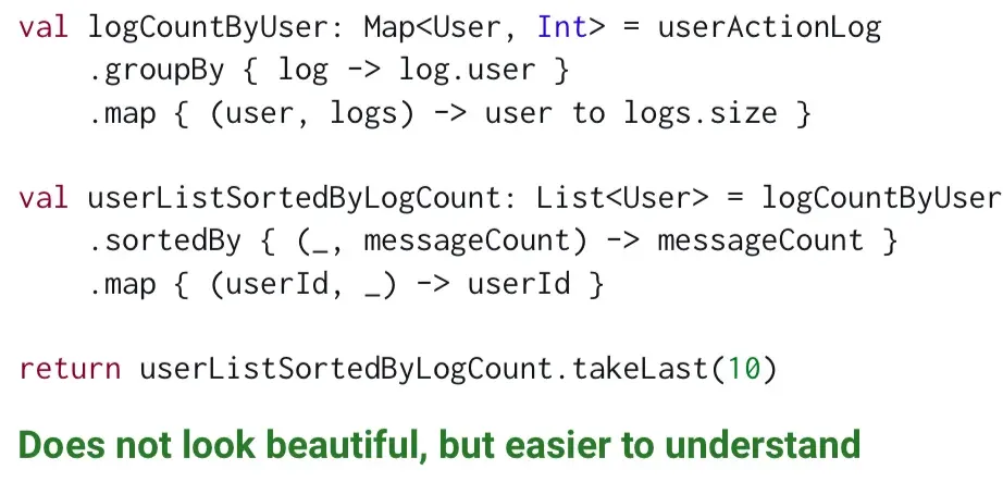 - 우아하지는 않지만 변수등으로 나눠줌으로써 훨씬 쉽게 읽을 수 있다.