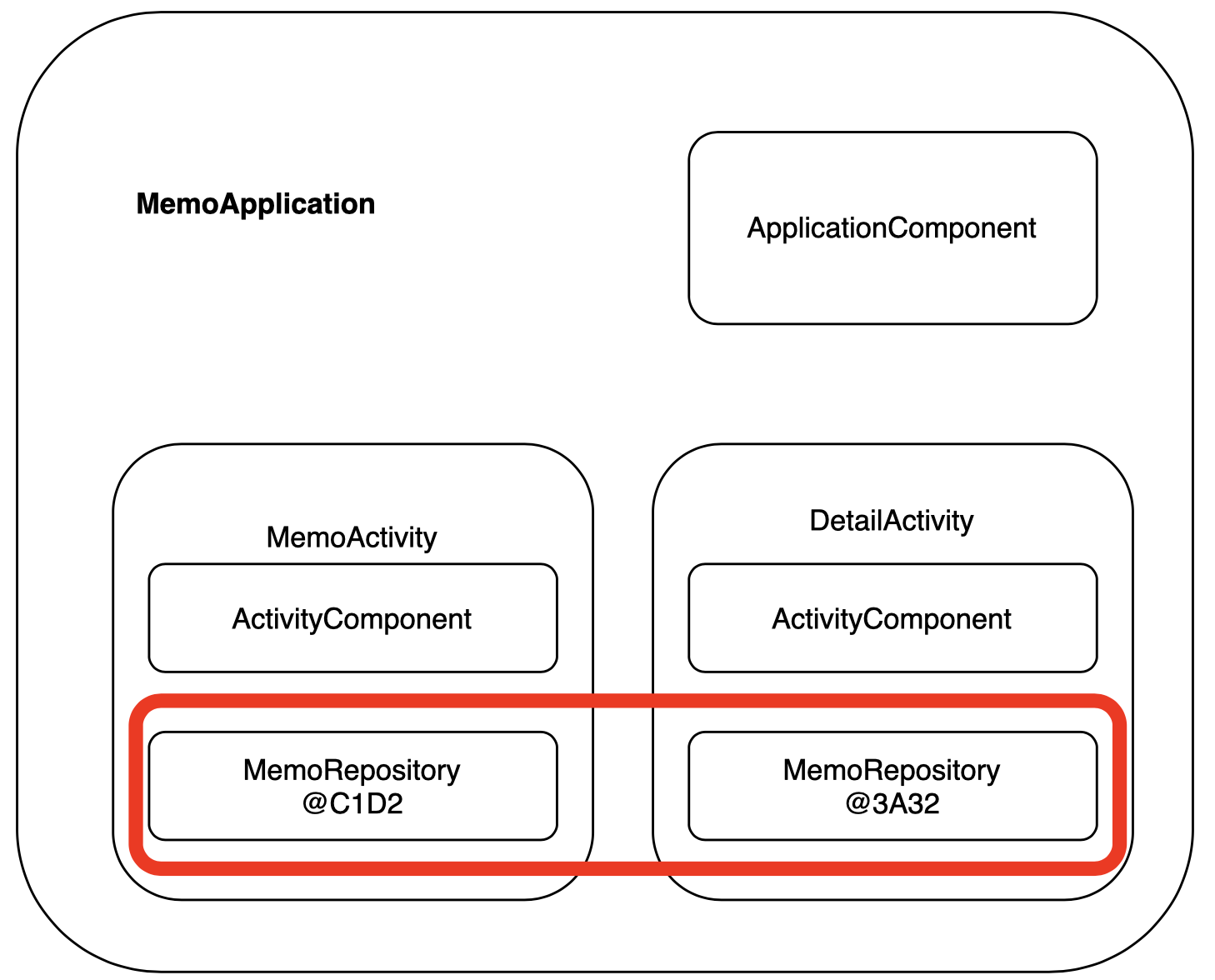 class MemoActivity: Activity() { private lateinit var memoRepository: MemoRepository override fun onCreate(savedInstanceState: Bundle?) { super.onCreate(savedInstanceState) val appContainer = (application as MemoApplication).appContainer memoRepository = appContainer.memoRepository }- AppContainer를 직접 관리해야하고, 모든 종속 항목의 인스턴스를 수동으로 만들어야 합니다.