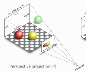 - Perspective Projection : 이 프로젝션은 사람의 눈이나 카메라가 세상을 바라 보는 것처럼 원근법을 적용하여 객체를 표현합니다.