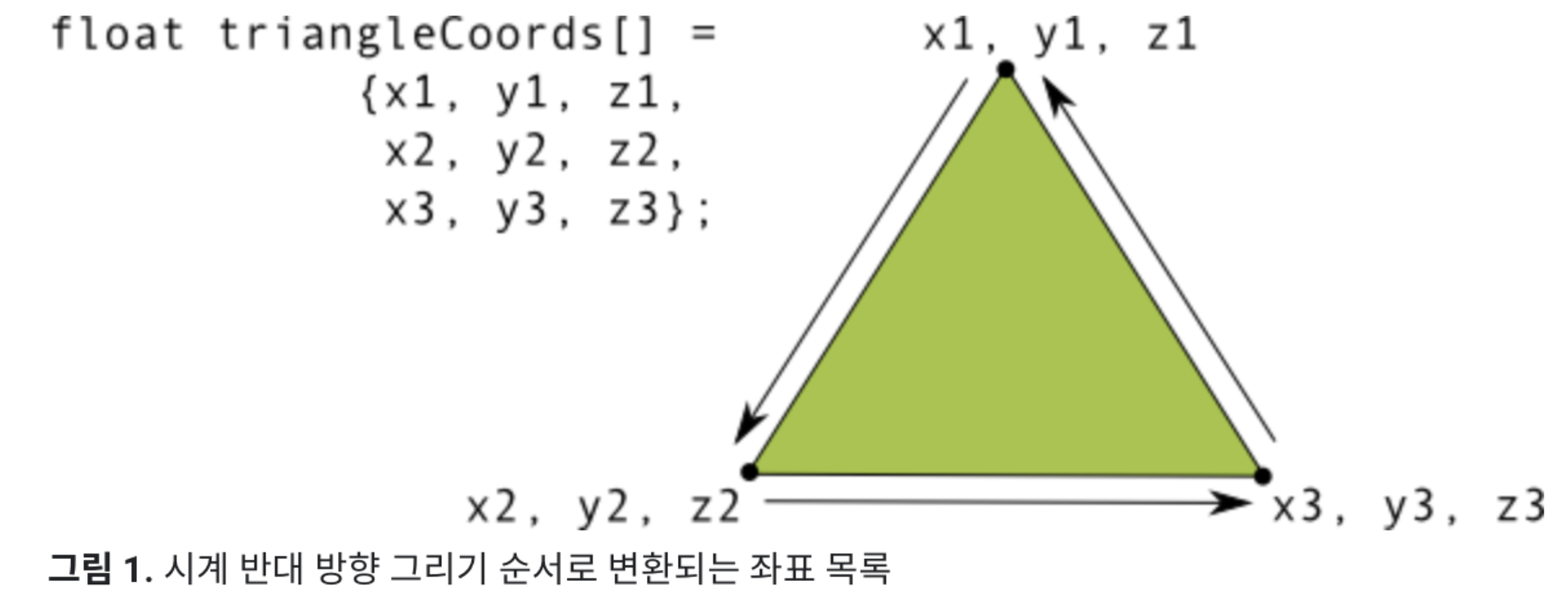 - OpenGL에서는 일반적으로 부동 소수점 숫자로 된 꼭짓점 배열을 좌표로 정의합니다.