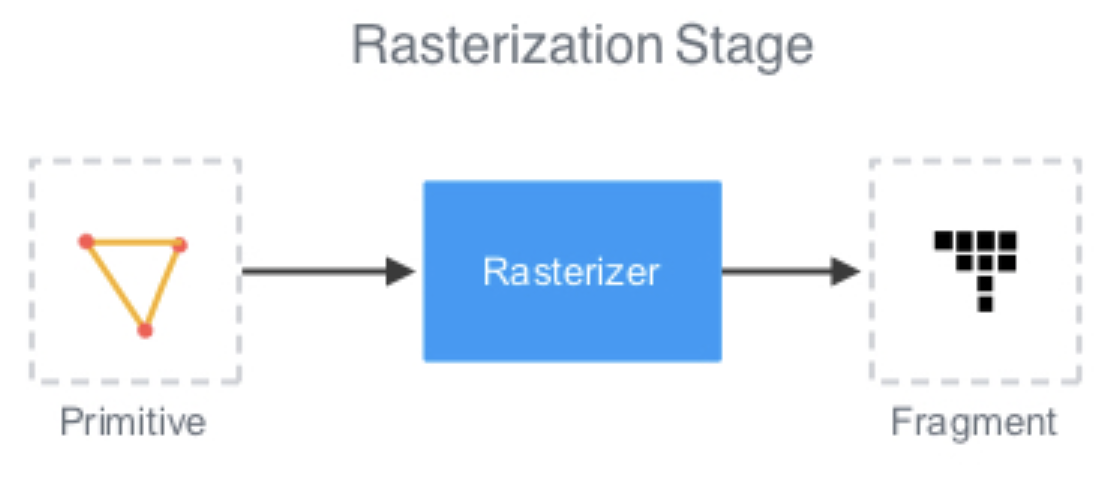 - Primitive를 화면에 보여주기 위해서는 Primitive의 형태를 화면의 출력 기본단위인 pixel로 근사화해야 한다. primitive가 나누진 각각의 작은 유닛을 fragment라고 부른다.
