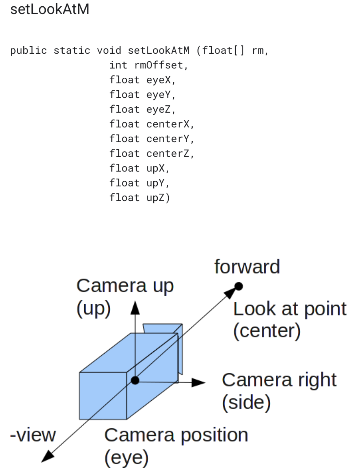 - 카메라 뷰 변환은 GLSurfaceView를 설정할 때 한 번만 계산하거나 사용자 작업 또는 애플리케이션의 기능에 기반하여 동적으로 변경할 수 있습니다.
